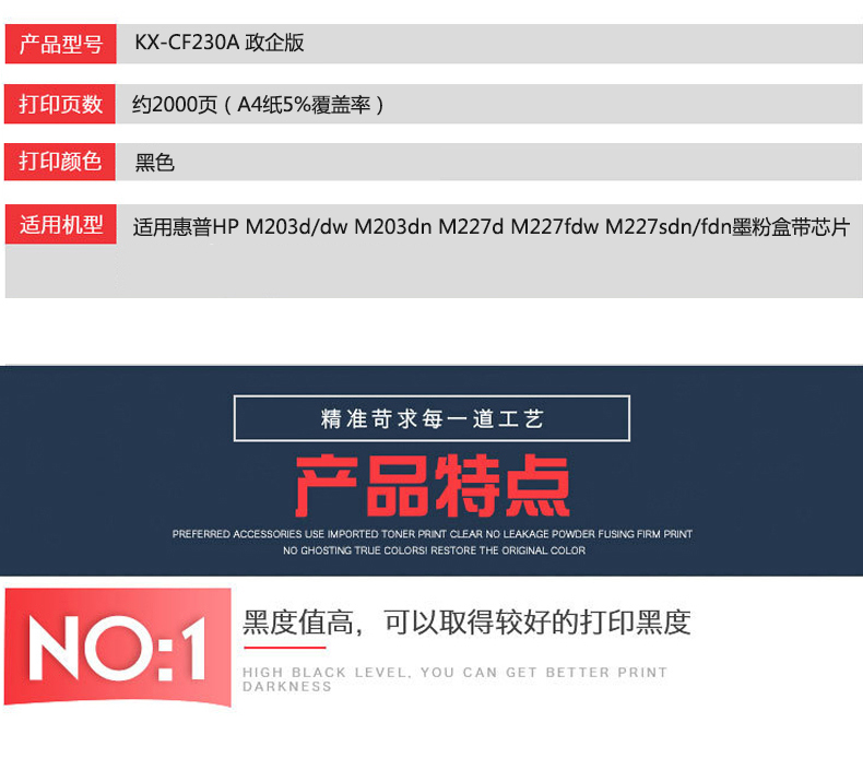 凱欣政企版 KX-CF230A 粉盒 適用M203dn M203dw M227fdw M227sdn 全國統(tǒng)一價:156元