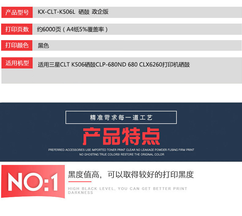 凱欣KX-CLT-K506L 適用三星CLT K506硒鼓CLP-680ND 680 CLX6260打印機硒鼓 全國統(tǒng)一價:275元