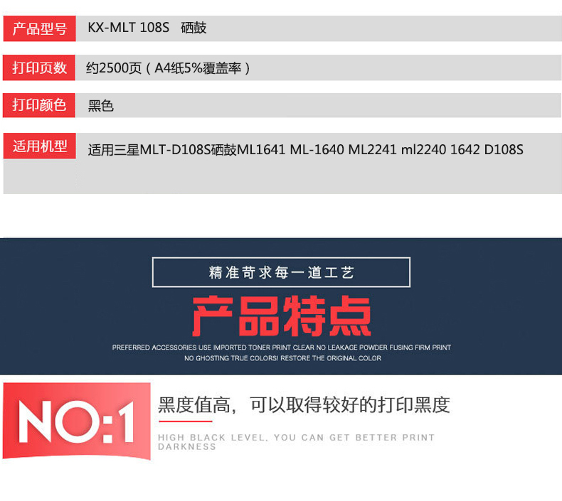 凱欣標(biāo)準(zhǔn)版 KX-MLT108S粉盒 適用三星MLT-D108S硒鼓ML1641 ML-1640 ML2241激光打印機(jī)墨盒ml2240 全國(guó)統(tǒng)一價(jià):156元